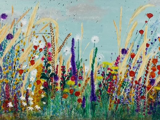 Wenn du Lust hast, dein eigenes Wildblumenbild zu gestalten, zeige ich dir in meinen Kursen Schritt für Schritt, wie meine Blumenbilder entstehen – ganz entspannt und auch ohne Vorkenntnisse.